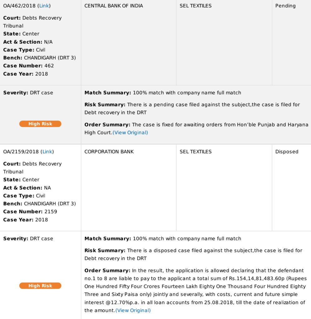 If SEL’s lenders had access to such a report, they would have known that SEL Textiles had 60 registered cases. Between 2015 to 2018, SEL was involved in multiple income tax violation cases in the ITAT (Income Tax Appellate Tribunal).